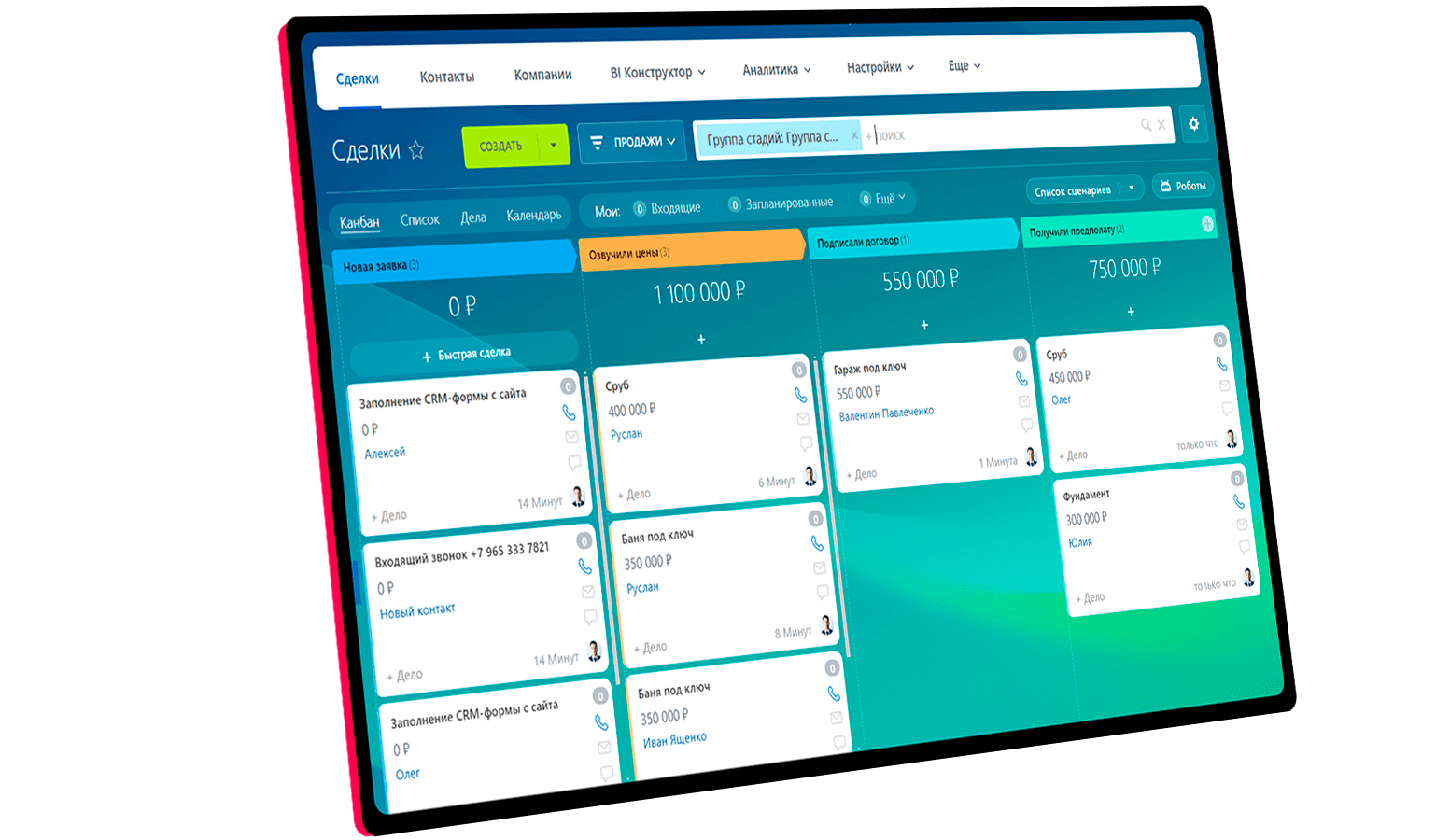 Каждый этап продаж виден как на ладони: от первой заявки до закрытия сделки. Понятно, где теряются клиенты и деньги.